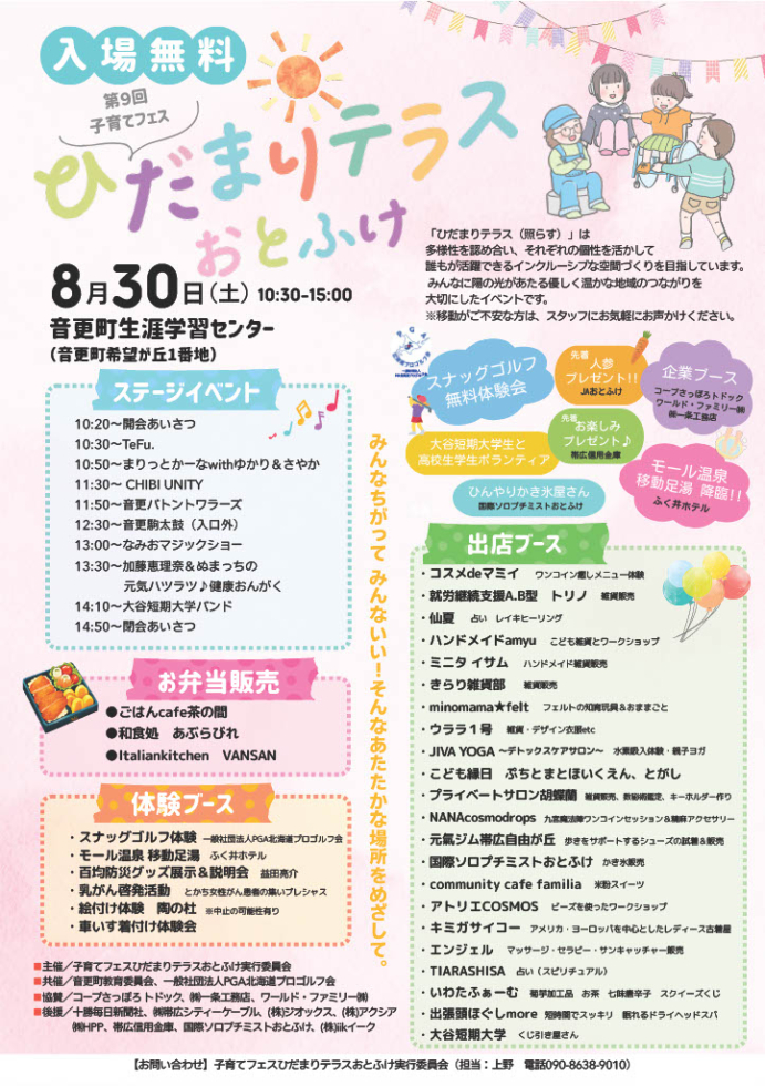 第9回とかち子育てフェスが8月30日(土)10:30から 音更町生涯学習センター...